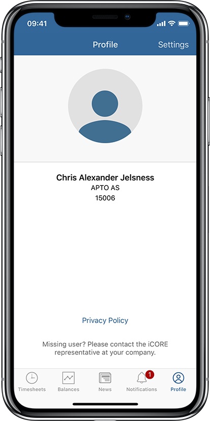 From the Profile-screen you can access the Settings-screen, where timesheet defaults are maintained. Which defaults are available depends on the selected configuration of your business’ iCORE installation.